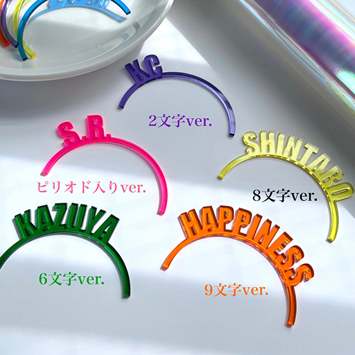 ケーキ型のデザインに名入れ刻印してお届けするcustom CAKE、ご希望の数字をカットしてお届けするcustom NUMBER、お好きな文字をカットしてお届けするcustom TEXTの3種をラインナップ!